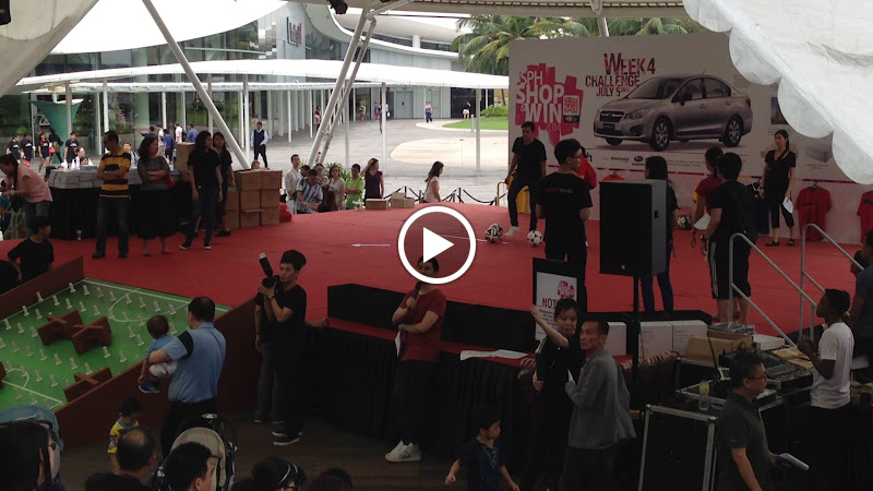 What is the game? You kick a football down a pinball-like ramp with boxes at the bottom. Whichever box it ends up in, you get into the draw for that prize. The car is, of course, the hardest box to get into. (Hmm, ok, I can't embed videos from Picasa Web Albums.)